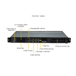 6 x Status LED (LAN, HDD, System) 1 x Reset Button 1 x Power Button 1 x RJ45 Dedicated IPMI 2 x USB 3.2 (Gen1) 4 x RJ45 GbE LAN 2 x RJ45 10G LAN 2 x SFP28 25G LAN 1 x VGA |